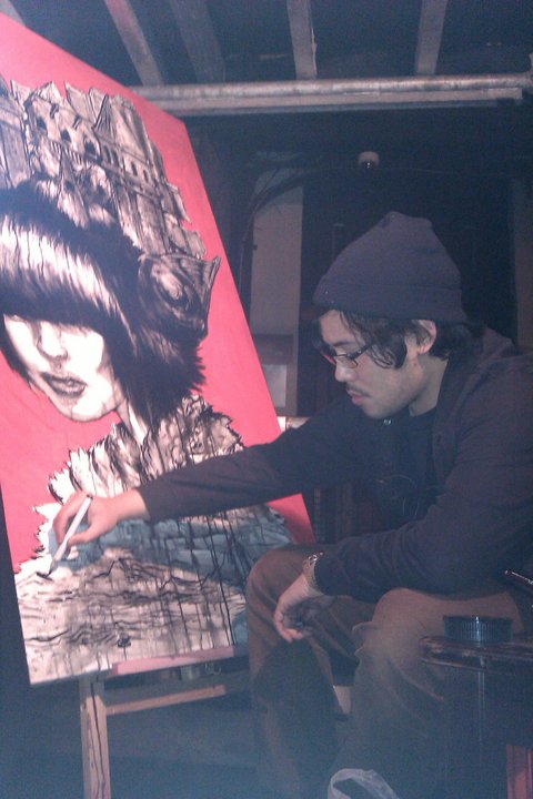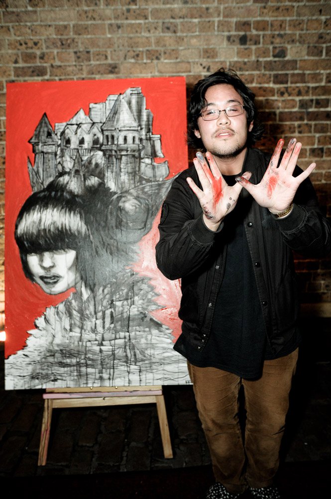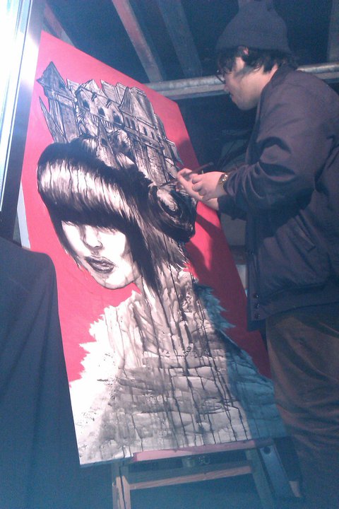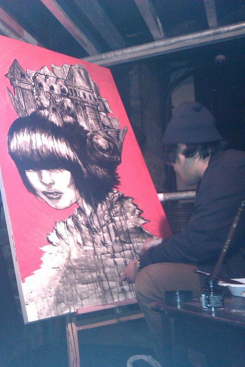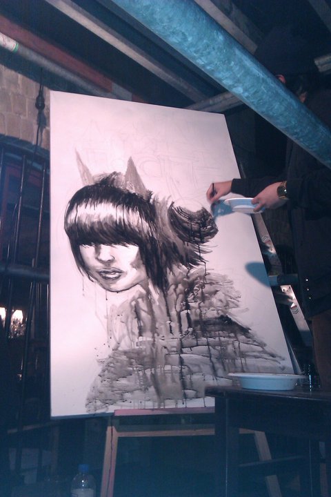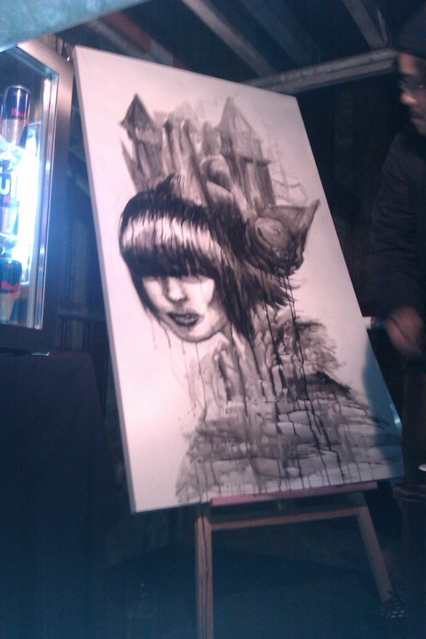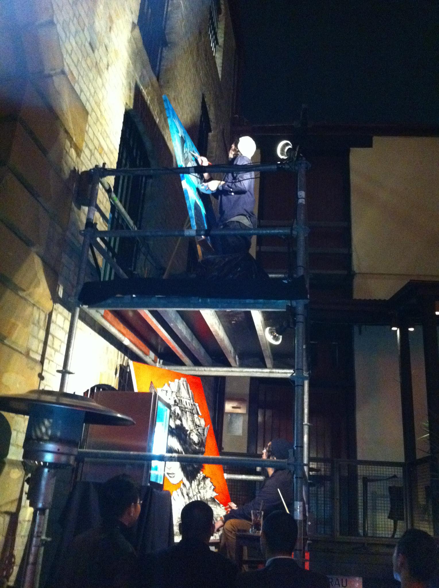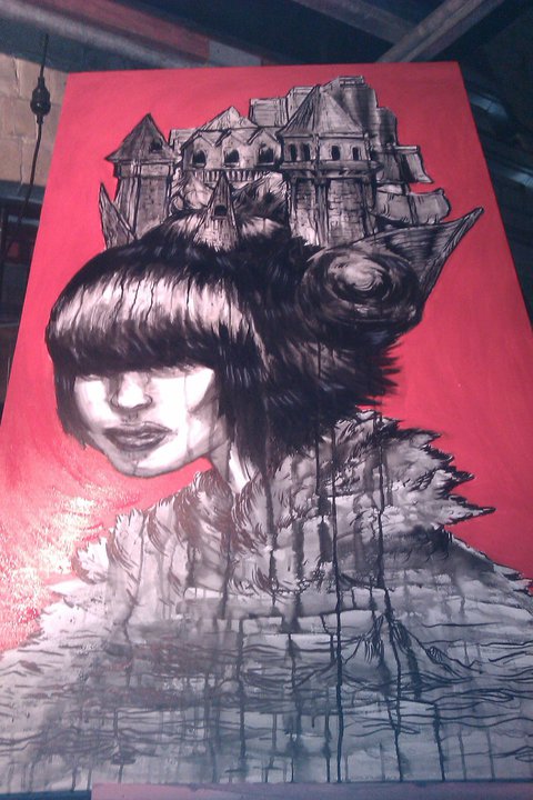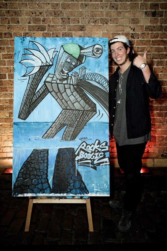 So when we first got there the canvas was way bigger than we thought. It was roughly 1.5m x 1m with a total of 3 hours to cover it all, also seeing the competition from last week Cam and I had a lot to live up to. The piece had to incorporate the theme of “the rocks” somewhere, open to interpretation with no aerosols allowed. Crazy nervs for like the first 10 minutes, the rest we were on autopilot. For my piece I used ink wash, poscas and acrylic for the background. check it out….