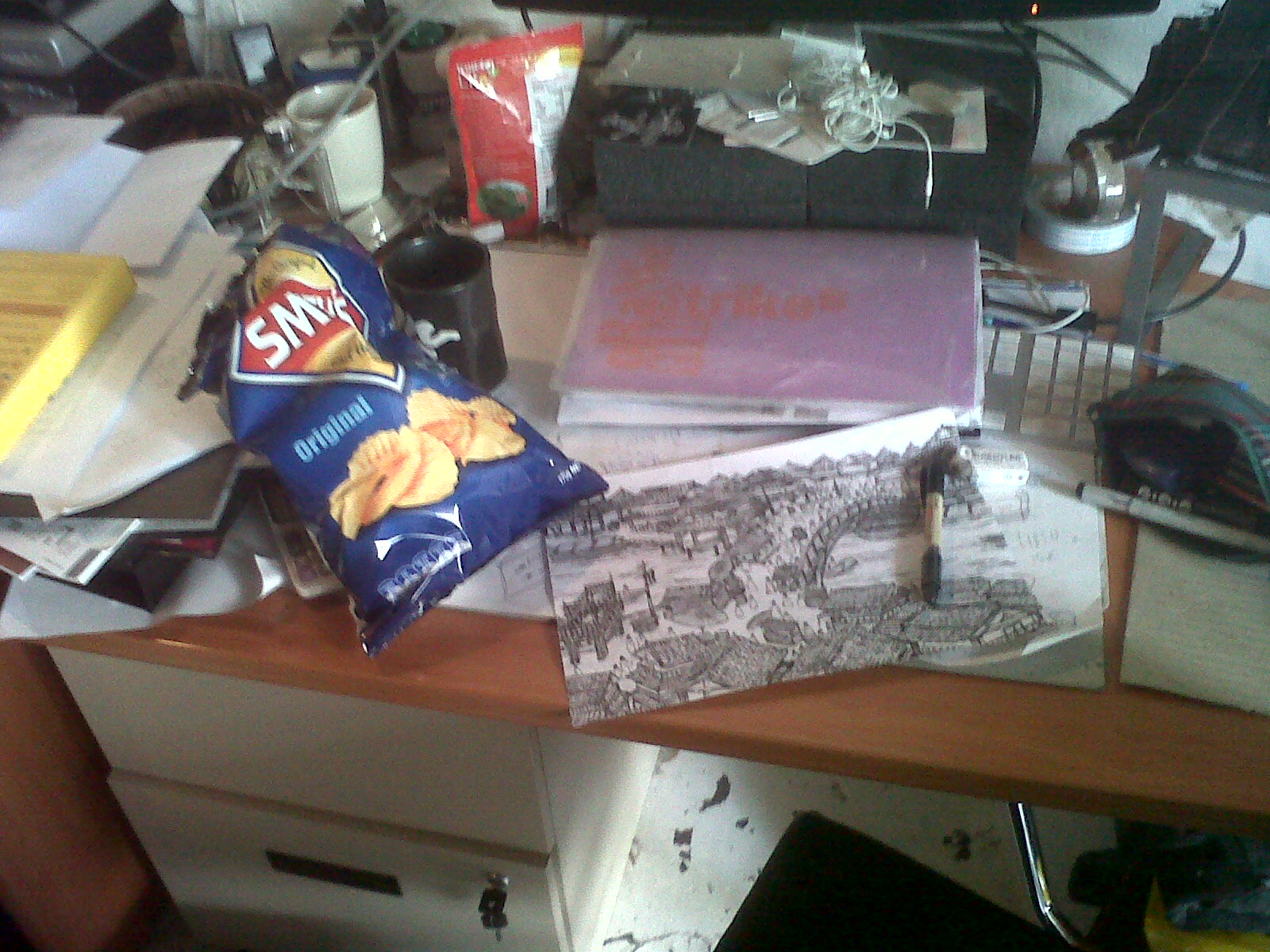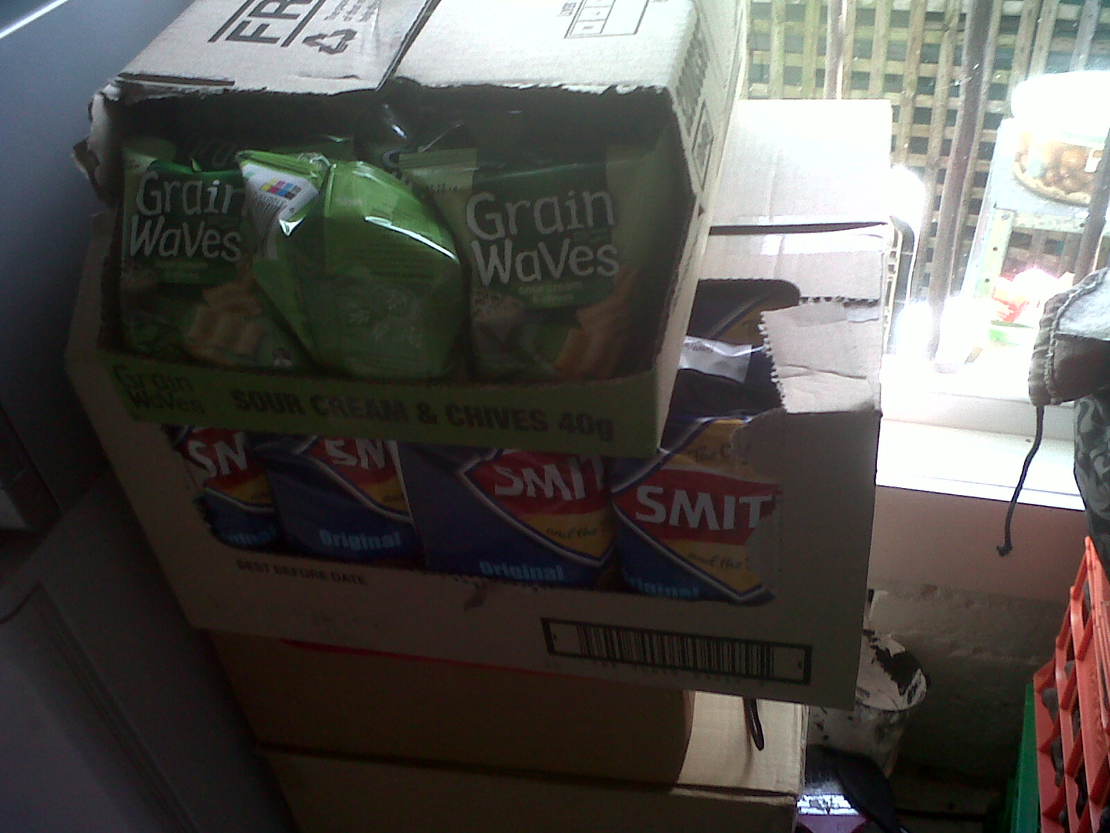 Started the day with a greasy suprise. After the boys worked on the redesign of Smith’s Corporate site we were welcomed with racks on racks of various chips as a gift of fiendish proportions. Straight up there were like 200 packs, which shortly led to the itis. Well I did at least. Anyways here are some crackberry snaps…