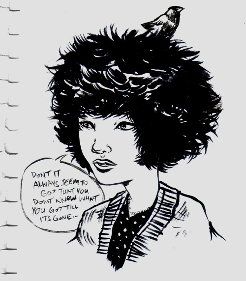 Chilled out bo-ho girl so of course she would be singing herself some Joni Mitchell