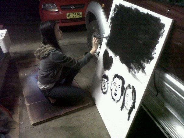 props to Flo for hooking up the undercoat and putting in that slave work. Nice drawing of Charles, not too sure who that hairy asian gameshow host on the far left is though.