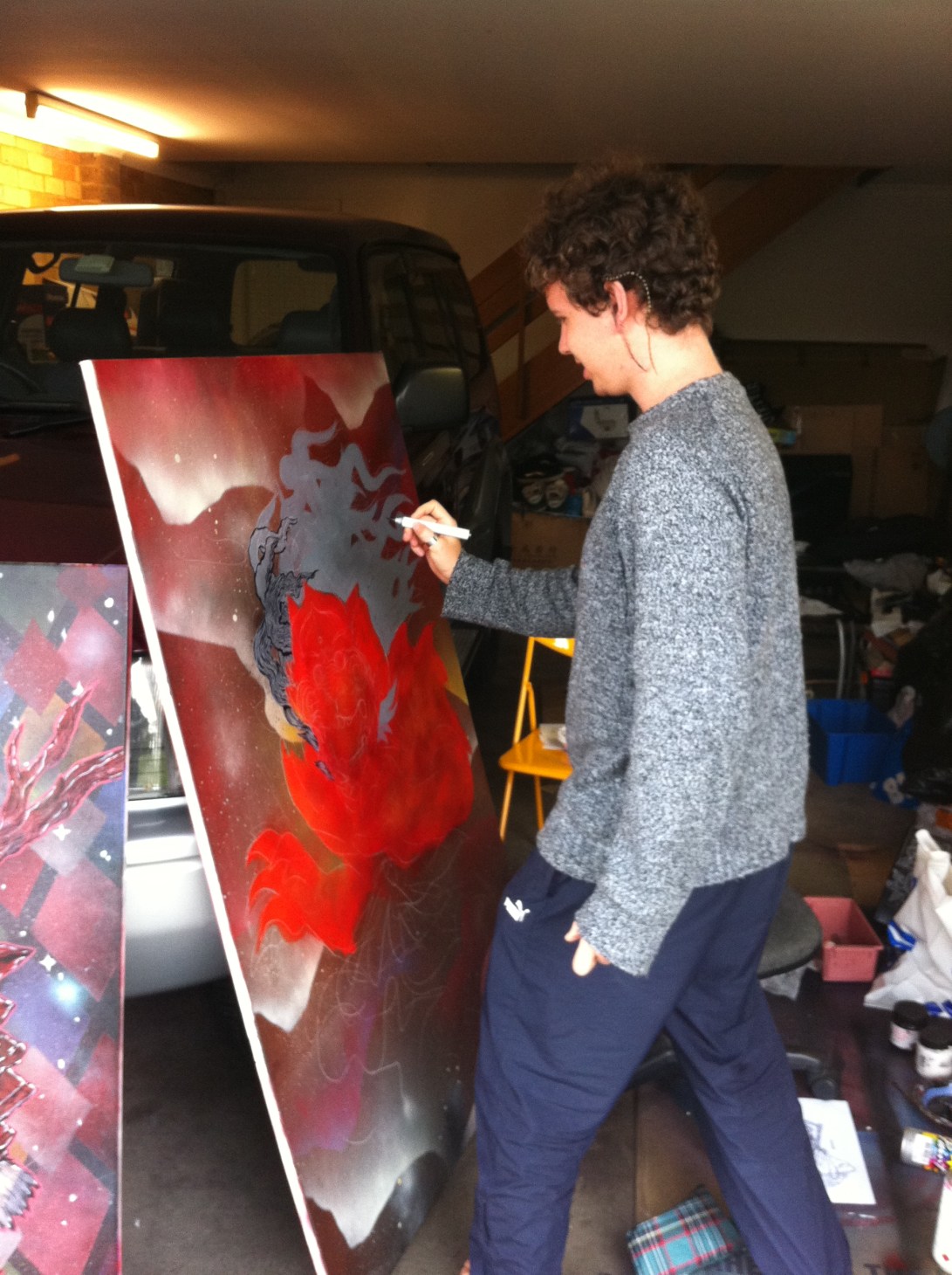 Acyrlics and some spray once again to create the girl + helmet. Me also looking super phased.