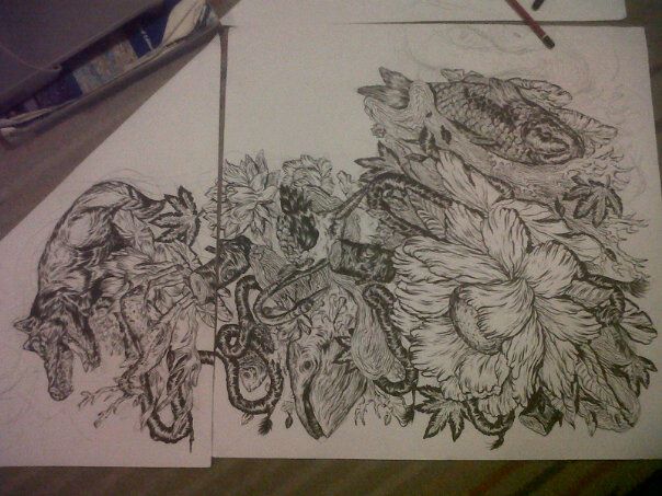 Heres a brief taste of what is to be of 5 drawings in total. This probably doesnt make too much sense right now but i’ll post up the final lines when theyre all scanned and polished.