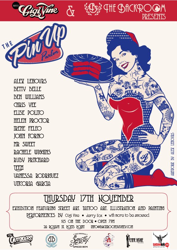 In other news the 2nd project ive been working on is a piece for The Pin-Up parlour exhbition and show. So if you like burlesque, pin up girls, the 40s, sailor tatts etc. come by! I think there will be live dancing and performances aswell as the artworks themselves. Heres the flyer yo