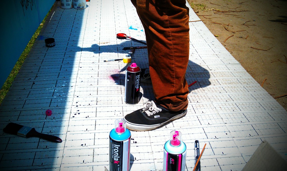 From the onset while planning the gallery with Gerald, we knew we wanted to go big, loud and colourful. Gerald’s art before this point was all precise and detailed black and white ink work so it was a big jump out of his comfort zone to go into large scale canvas colour.