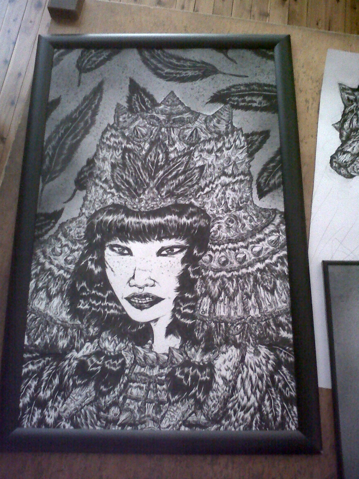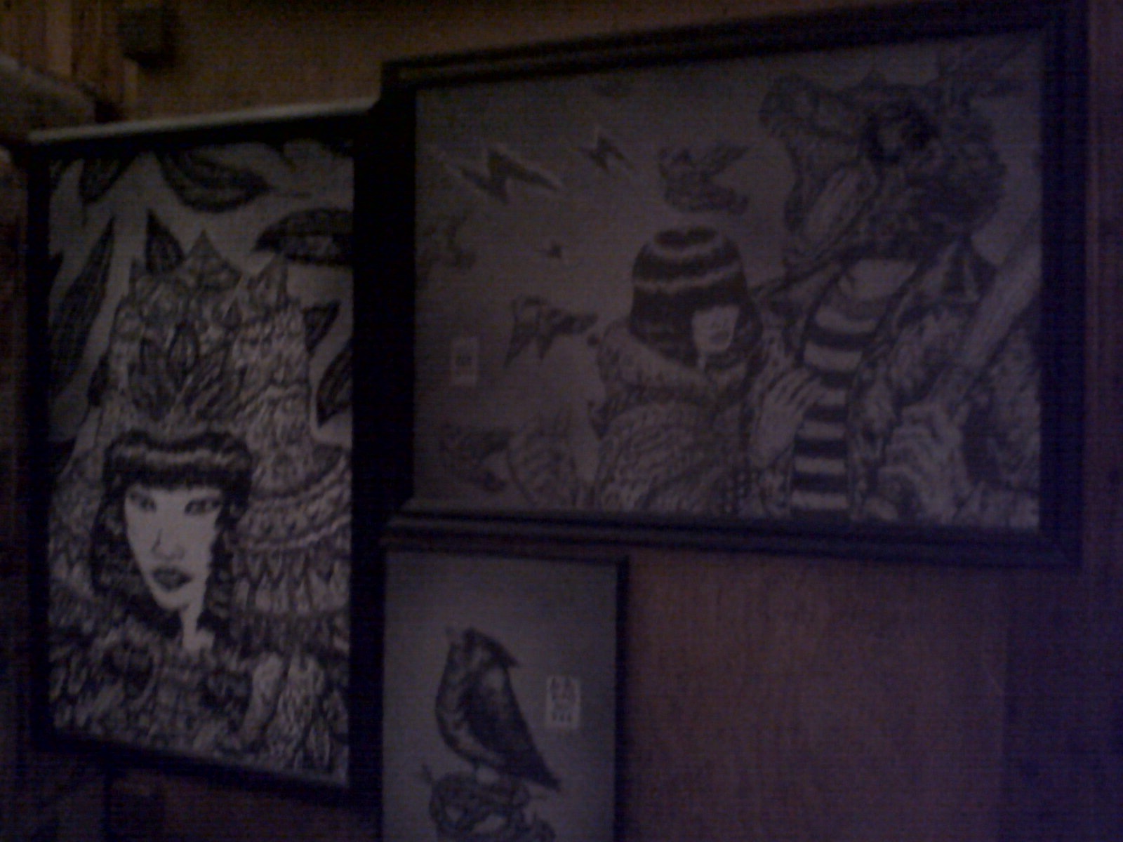 Some stuff ive been working on for next, next thursdays exhibition. Forgive the quality, crackberry at its finest… ive drawn birds for most of my friends as gifts, i can draw these with my eyes closed now.